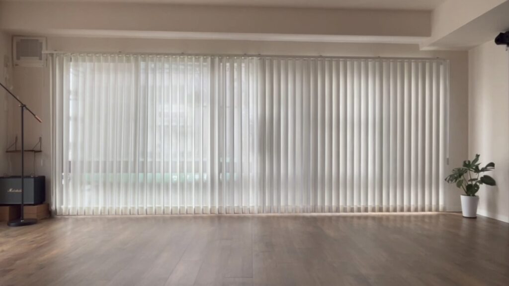 スタジオに黄色いカーテンがあります。その内側でお着替えいただくか、洗面スペース(白いアコーディオンカーテン内側)でもお着替えいただけます。
